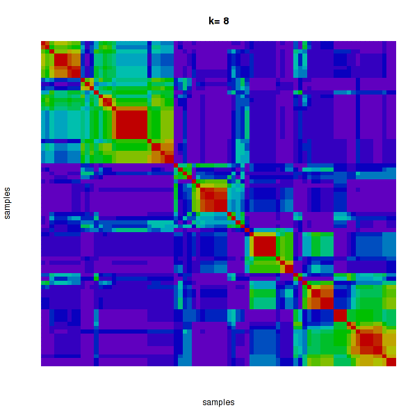 Figure 4. Get High-res Image The consensus matrix after clustering shows 8 clusters with limited overlap between clusters.