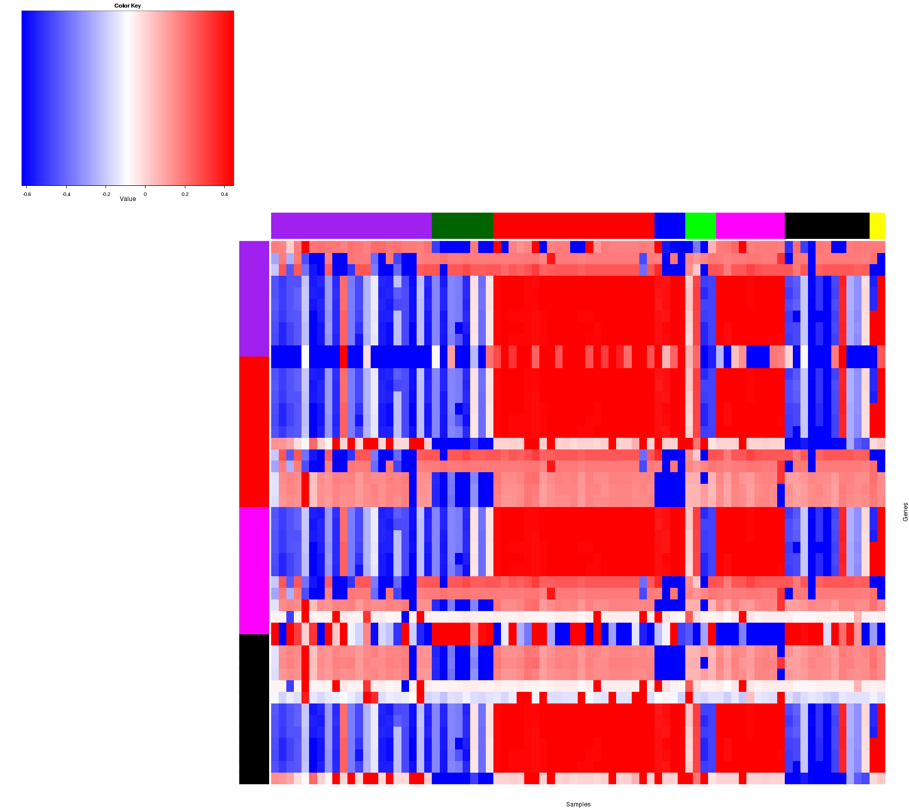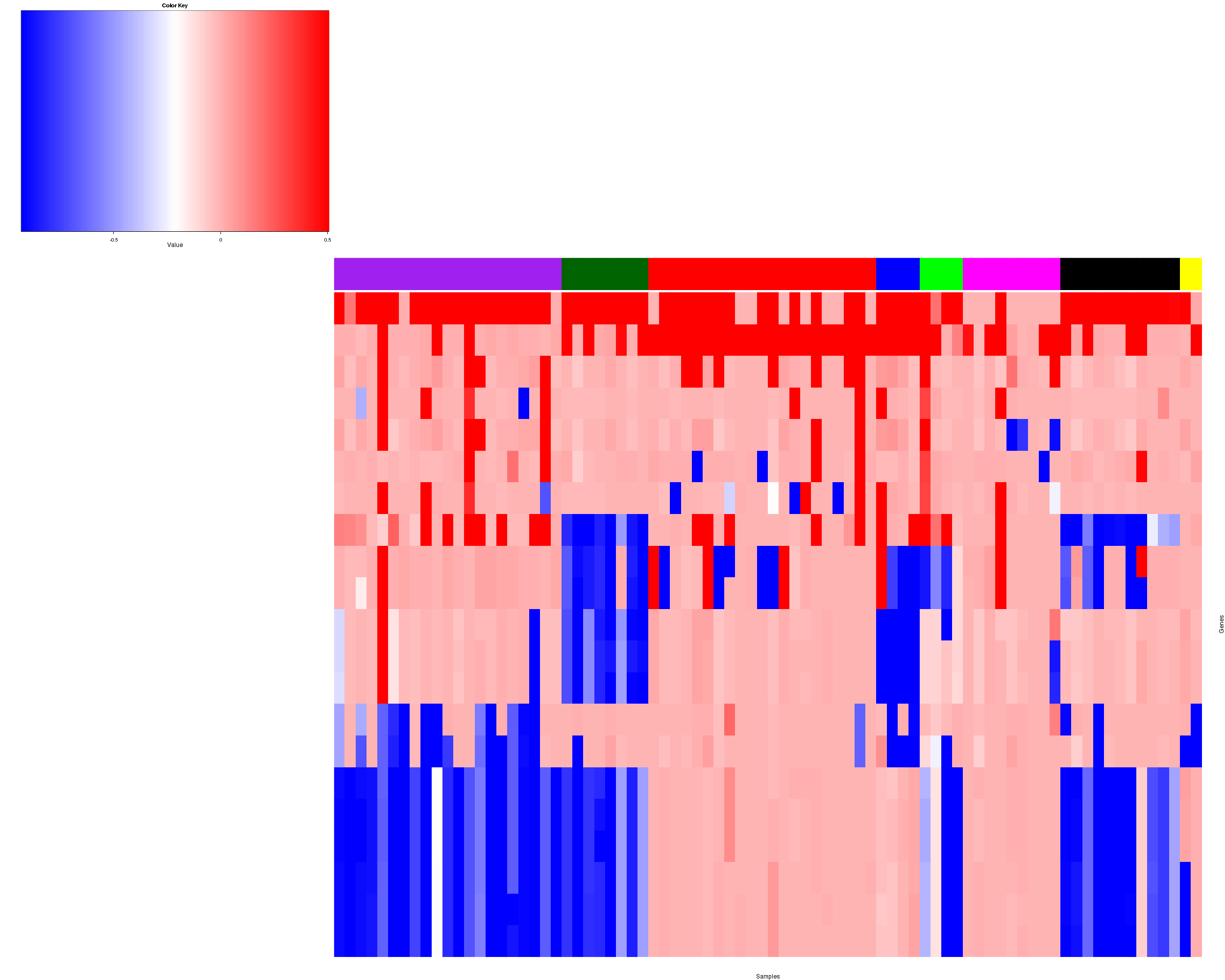 Figure 1. Get High-res Image Samples were separated into 8 clusters. Shown are 80 samples and 47 marker focal events. The color bar of the row indicates the marker focal events for the corresponding cluster.