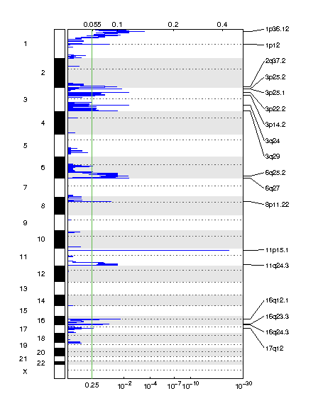 | 6p24.3 | 2.0409e-06 | 2.0409e-06 | chr6:1-18226822 | 115 |