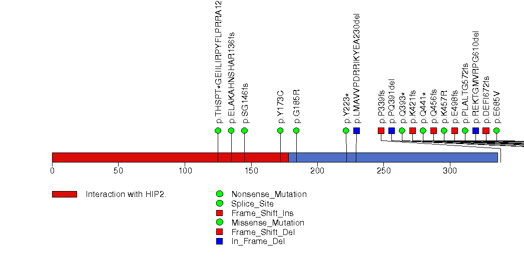 Figure S5. This figure depicts the distribution of mutations and mutation types across the BAP1 significant gene.