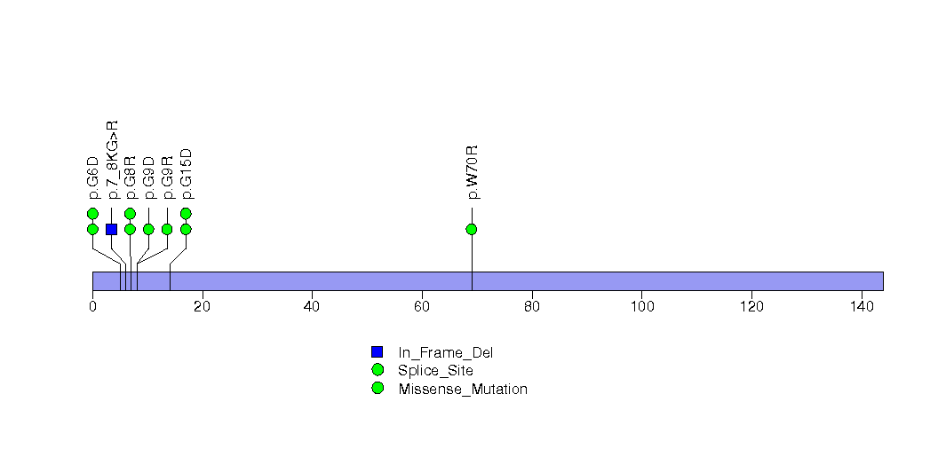 Figure S1. This figure depicts the distribution of mutations and mutation types across the GNA11 significant gene.