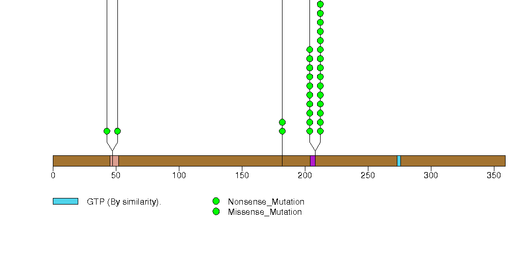 Figure S3. This figure depicts the distribution of mutations and mutation types across the GNAQ significant gene.