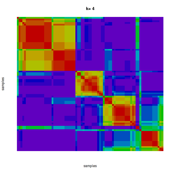 Figure 4. Get High-res Image The consensus matrix after clustering shows 4 clusters with limited overlap between clusters.