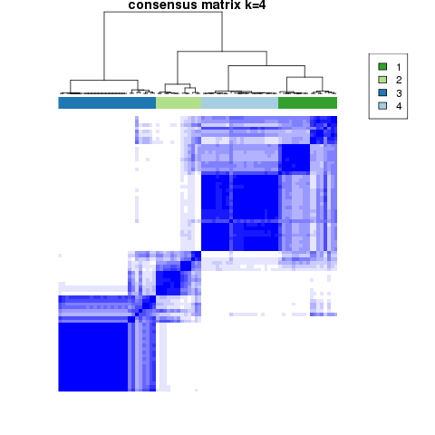 Figure 4. Get High-res Image The consensus matrix after clustering shows 4 clusters with limited overlap between clusters.