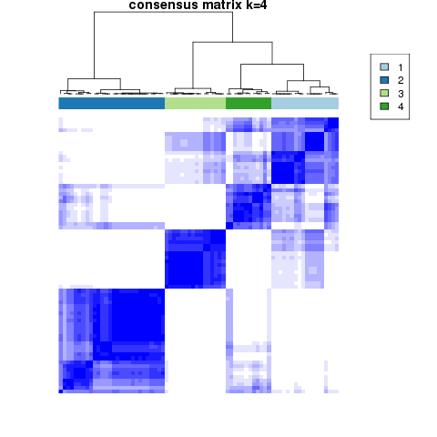 Figure 4. Get High-res Image The consensus matrix after clustering shows 4 clusters with limited overlap between clusters.