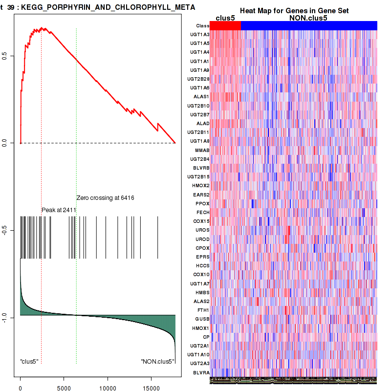 Table S1.  Get Full Table This table shows a Running Enrichment Score (RES) of each gene in this pathway, that is, the enrichment score at this point in the ranked list of genes. All genes are ranked by Signal-to-Noise (S2N), a measure of similarity as default and are used to obtain ES matrix of all genes. In this way, GSEA tool uses expression pattern of not only overlapped genes but also not-overlapped genes to produce ES matrix.