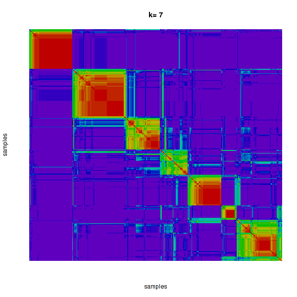 Figure 4. Get High-res Image The consensus matrix after clustering shows 7 clusters with limited overlap between clusters.