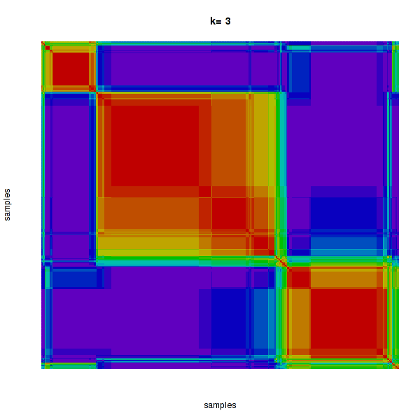 Figure 4. Get High-res Image The consensus matrix after clustering shows 3 clusters with limited overlap between clusters.