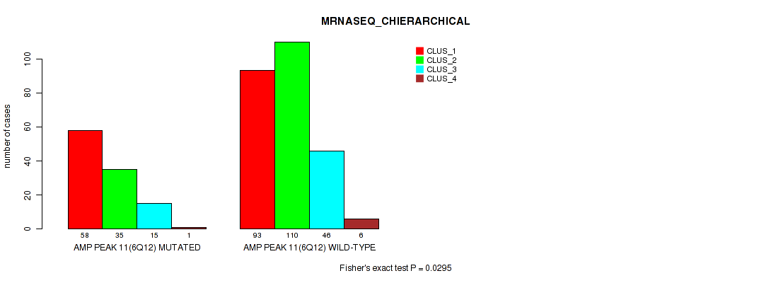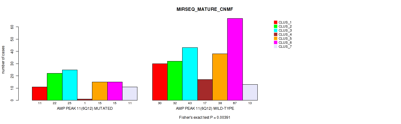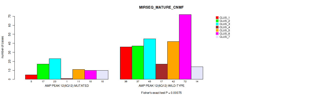 amp_6q12 cnv correlated to 'CN_CNMF', 'METHLYATION_CNMF', 'RPPA_CNMF', 'RPPA_CHIERARCHICAL', 'MRNASEQ_CNMF', 'MRNASEQ_CHIERARCHICAL', and 'MIRSEQ_MATURE_CNMF'.