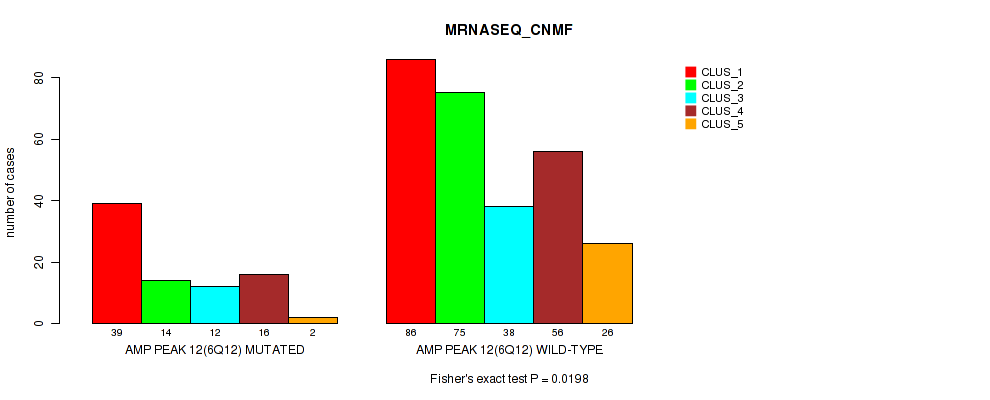 amp_6q12 cnv correlated to 'CN_CNMF', 'METHLYATION_CNMF', 'MRNASEQ_CHIERARCHICAL', and 'MIRSEQ_MATURE_CNMF'.