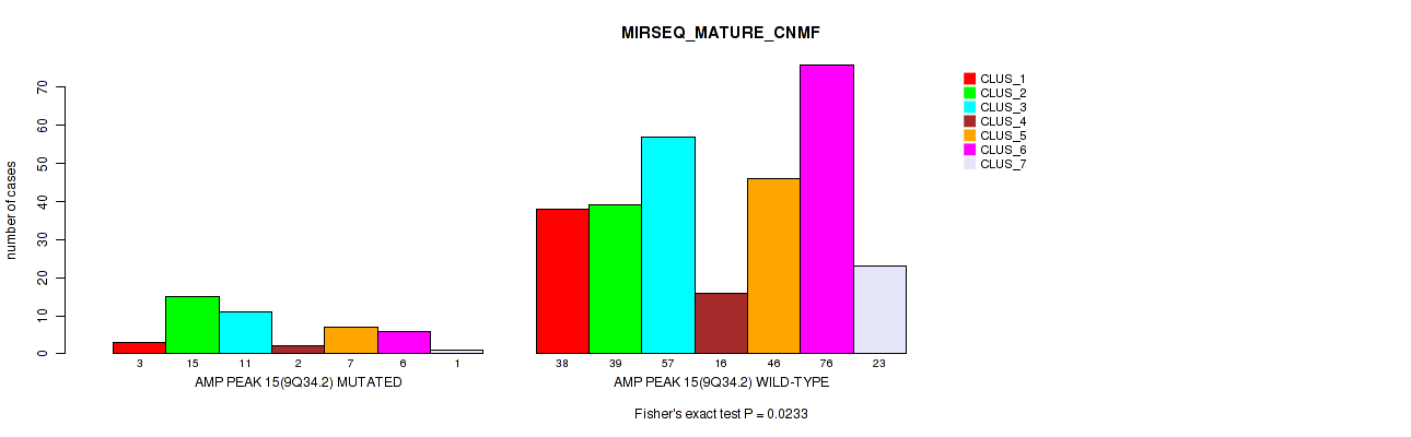 amp_9q34.2 cnv correlated to 'CN_CNMF', 'MRNASEQ_CNMF', 'MIRSEQ_CHIERARCHICAL', and 'MIRSEQ_MATURE_CNMF'.