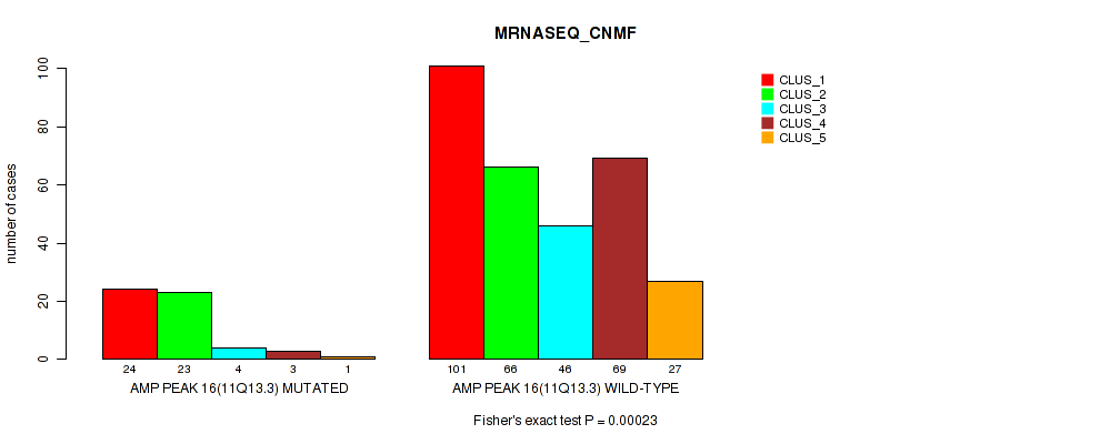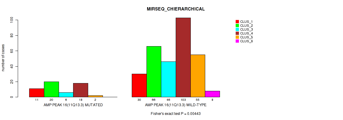 amp_11q13.3 cnv correlated to 'CN_CNMF', 'METHLYATION_CNMF', 'MRNASEQ_CNMF', 'MRNASEQ_CHIERARCHICAL', 'MIRSEQ_CNMF', 'MIRSEQ_CHIERARCHICAL', and 'MIRSEQ_MATURE_CHIERARCHICAL'.