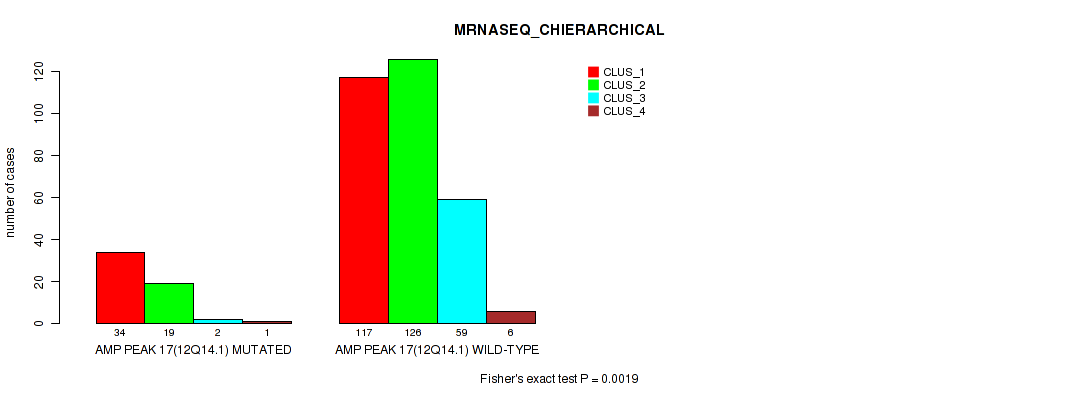 amp_12q14.1 cnv correlated to 'RPPA_CHIERARCHICAL', 'MRNASEQ_CNMF', 'MRNASEQ_CHIERARCHICAL', and 'MIRSEQ_MATURE_CNMF'.