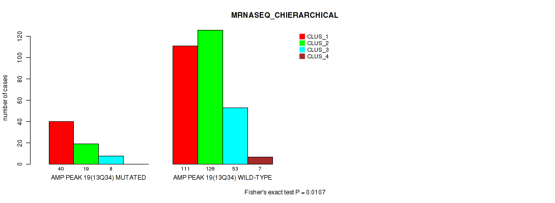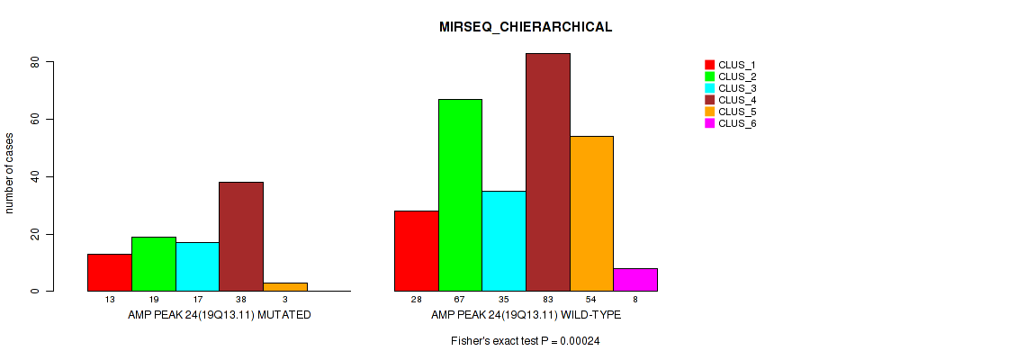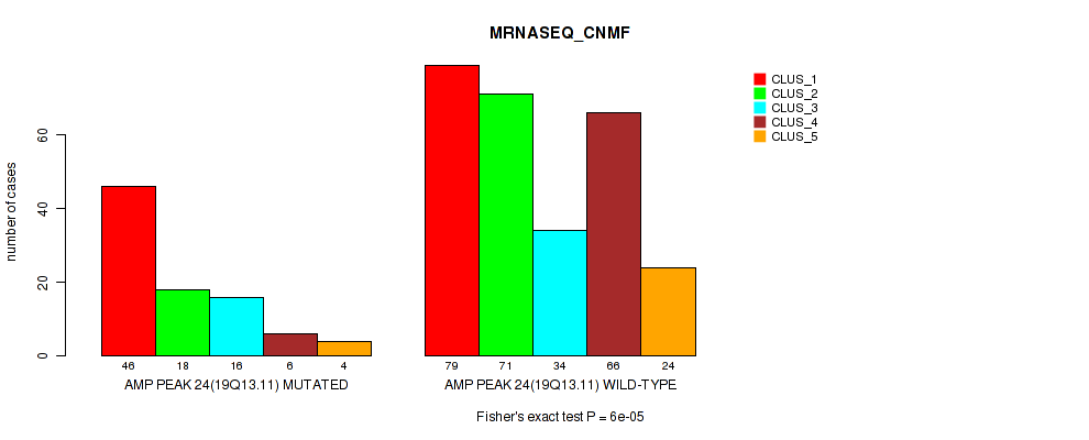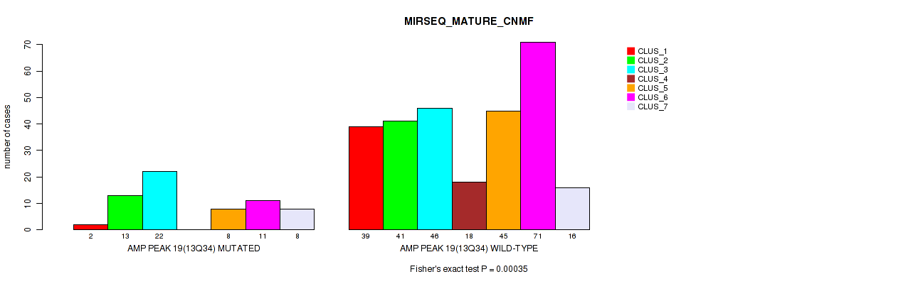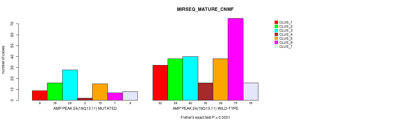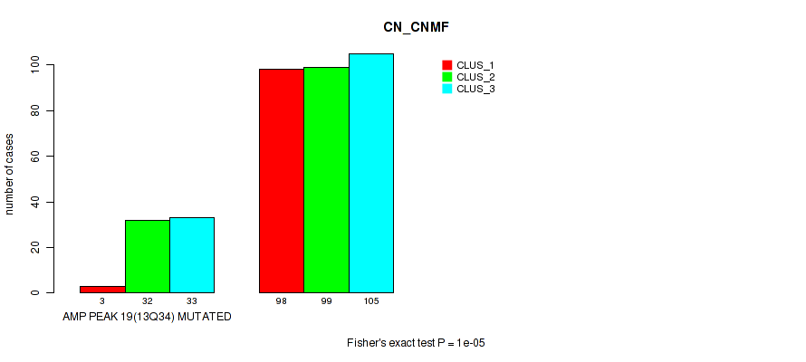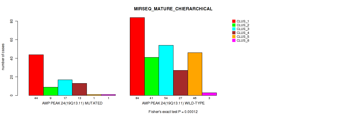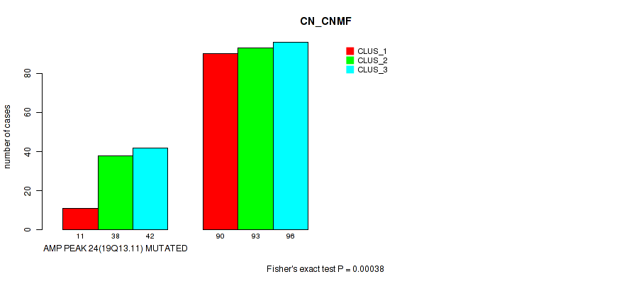 amp_19q13.11 cnv correlated to 'CN_CNMF', 'METHLYATION_CNMF', 'RPPA_CHIERARCHICAL', 'MRNASEQ_CNMF', 'MRNASEQ_CHIERARCHICAL', 'MIRSEQ_CHIERARCHICAL', 'MIRSEQ_MATURE_CNMF', and 'MIRSEQ_MATURE_CHIERARCHICAL'.