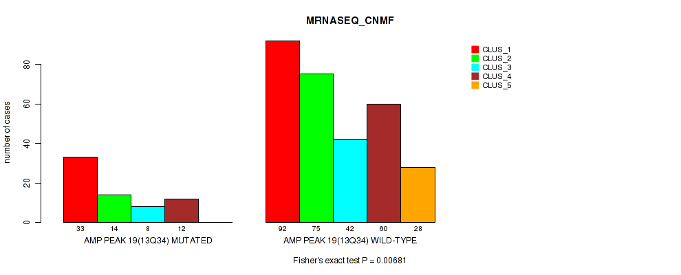 Figure S352. Get High-res Image Gene #55: 'del_19p13.3' versus Molecular Subtype #5: 'MRNASEQ_CNMF'