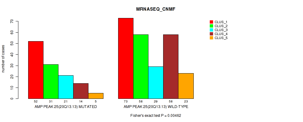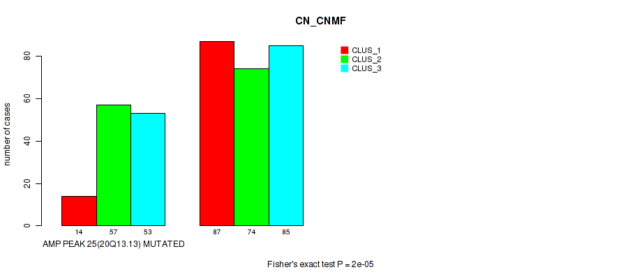 amp_20q13.13 cnv correlated to 'CN_CNMF', 'METHLYATION_CNMF', 'RPPA_CHIERARCHICAL', 'MRNASEQ_CNMF', 'MRNASEQ_CHIERARCHICAL', 'MIRSEQ_CNMF', 'MIRSEQ_CHIERARCHICAL', 'MIRSEQ_MATURE_CNMF', and 'MIRSEQ_MATURE_CHIERARCHICAL'.