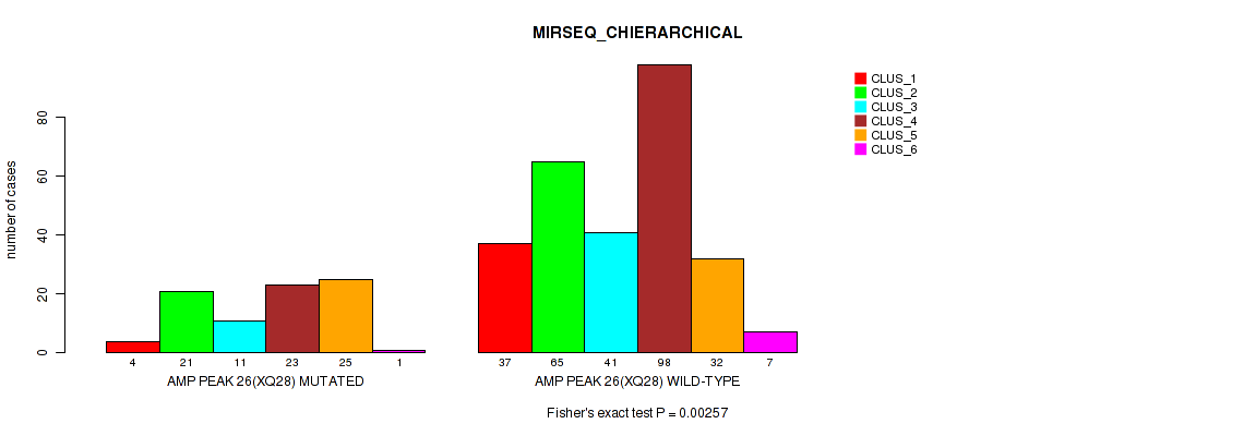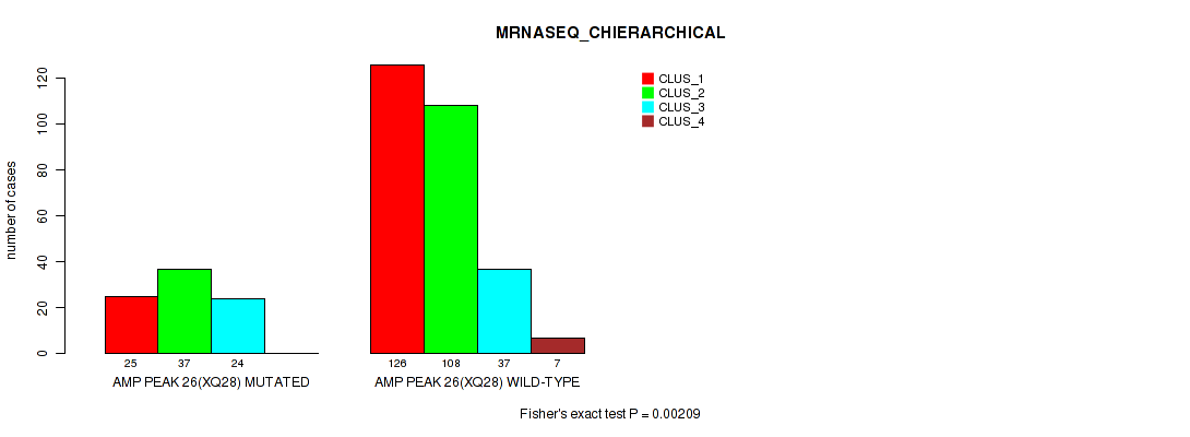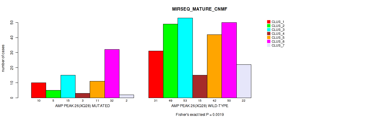 amp_xq28 cnv correlated to 'CN_CNMF', 'RPPA_CHIERARCHICAL', 'MRNASEQ_CHIERARCHICAL', 'MIRSEQ_CNMF', 'MIRSEQ_CHIERARCHICAL', 'MIRSEQ_MATURE_CNMF', and 'MIRSEQ_MATURE_CHIERARCHICAL'.