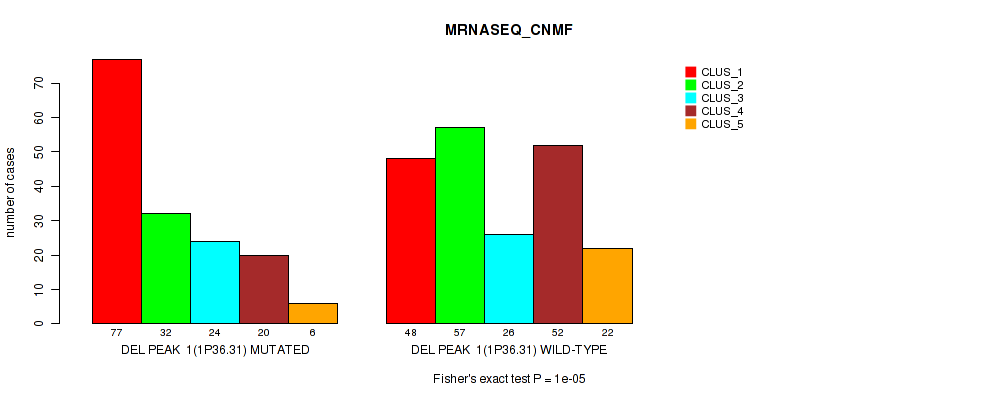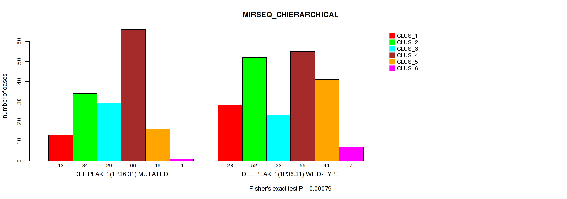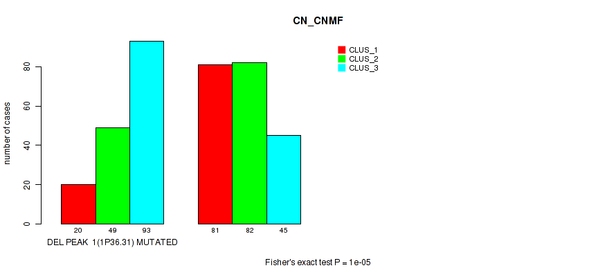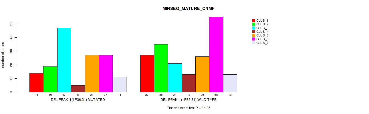 del_1p36.31 cnv correlated to 'CN_CNMF', 'METHLYATION_CNMF', 'MRNASEQ_CNMF', 'MRNASEQ_CHIERARCHICAL', 'MIRSEQ_CNMF', 'MIRSEQ_CHIERARCHICAL', 'MIRSEQ_MATURE_CNMF', and 'MIRSEQ_MATURE_CHIERARCHICAL'.