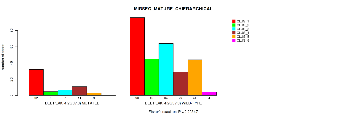 del_2q37.3 cnv correlated to 'CN_CNMF', 'MRNASEQ_CNMF', 'MRNASEQ_CHIERARCHICAL', 'MIRSEQ_CHIERARCHICAL', and 'MIRSEQ_MATURE_CHIERARCHICAL'.