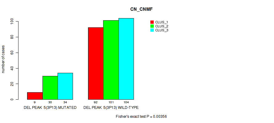 amp_5q35.3 cnv correlated to 'CN_CNMF', 'MRNASEQ_CNMF', and 'MIRSEQ_CNMF'.