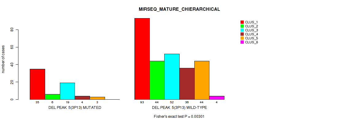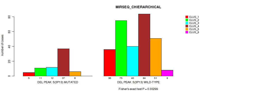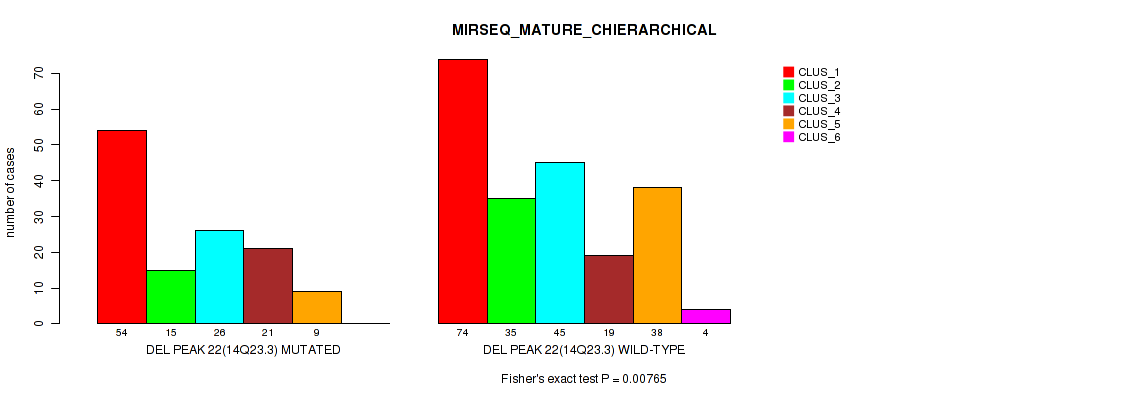 Table S356. Gene #55: 'del_19p13.3' versus Molecular Subtype #10: 'MIRSEQ_MATURE_CHIERARCHICAL'