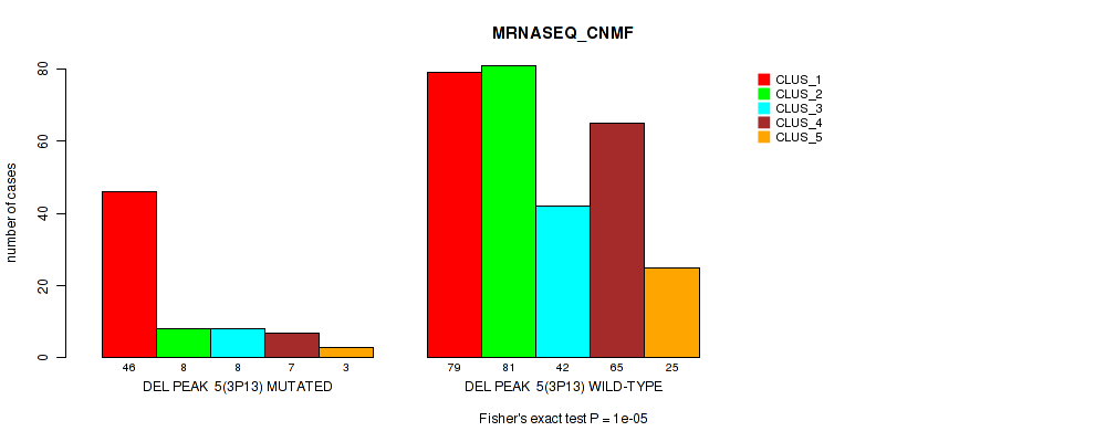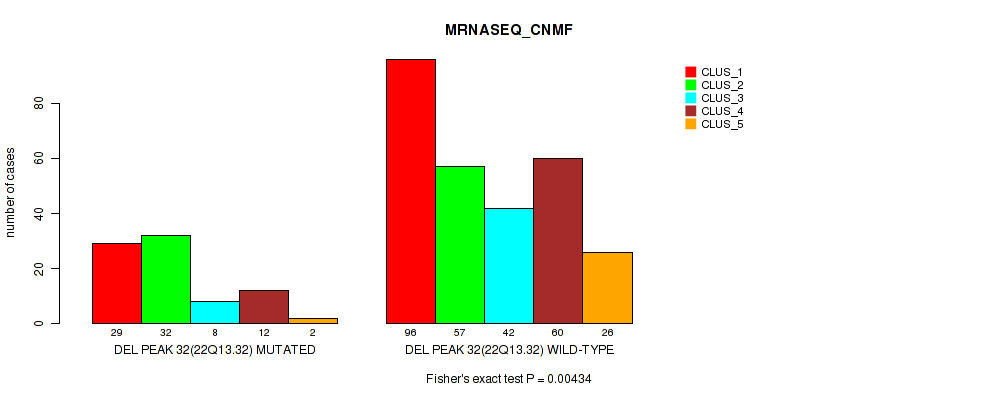Figure S361. Get High-res Image Gene #58: 'del_22q13.32' versus Molecular Subtype #5: 'MRNASEQ_CNMF'