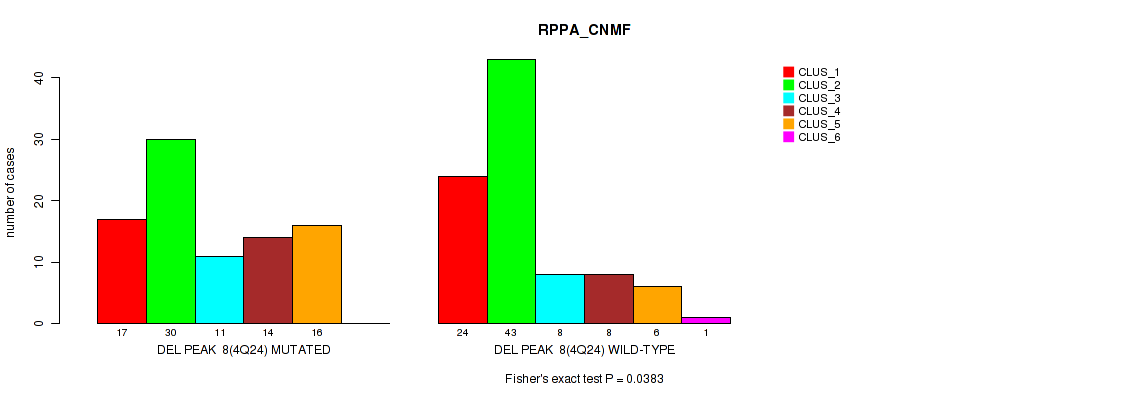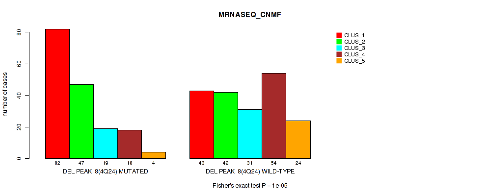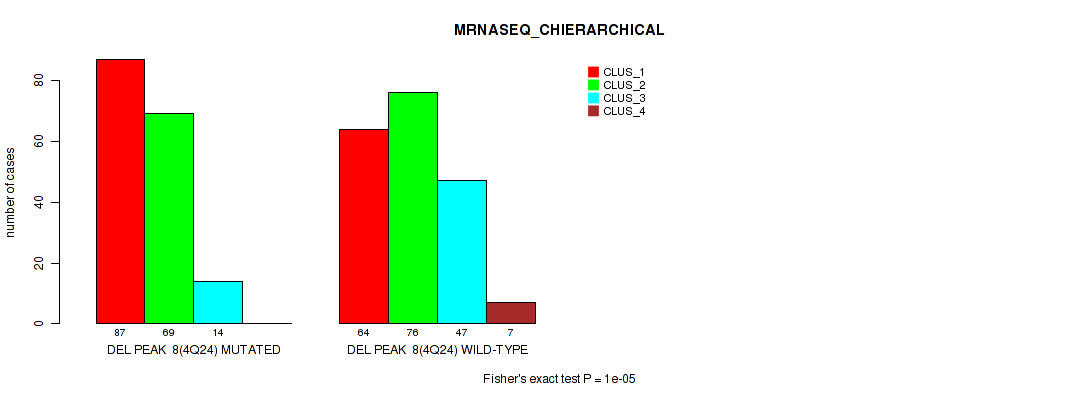 del_4q24 cnv correlated to 'CN_CNMF', 'METHLYATION_CNMF', 'RPPA_CNMF', 'MRNASEQ_CNMF', 'MRNASEQ_CHIERARCHICAL', 'MIRSEQ_CNMF', 'MIRSEQ_CHIERARCHICAL', 'MIRSEQ_MATURE_CNMF', and 'MIRSEQ_MATURE_CHIERARCHICAL'.