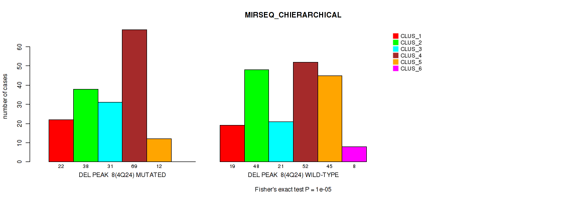 Table S354. Gene #55: 'del_19p13.3' versus Molecular Subtype #8: 'MIRSEQ_CHIERARCHICAL'