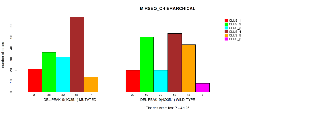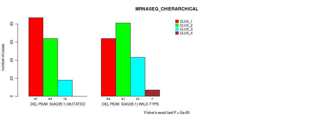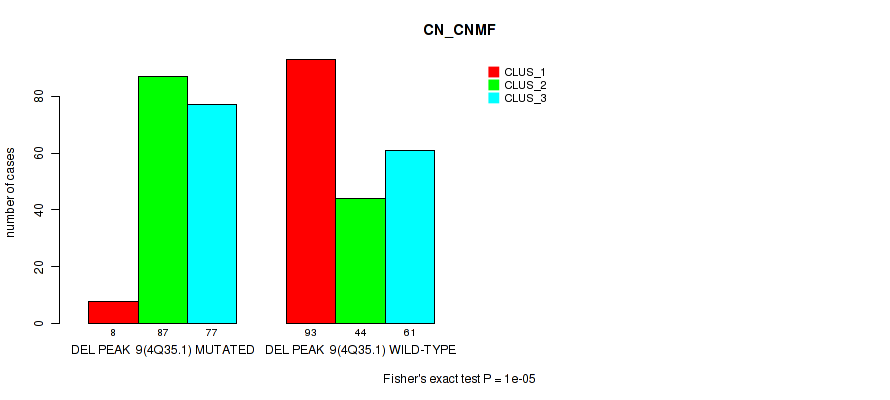 del_4q35.1 cnv correlated to 'CN_CNMF', 'METHLYATION_CNMF', 'RPPA_CNMF', 'MRNASEQ_CNMF', 'MRNASEQ_CHIERARCHICAL', 'MIRSEQ_CNMF', 'MIRSEQ_CHIERARCHICAL', 'MIRSEQ_MATURE_CNMF', and 'MIRSEQ_MATURE_CHIERARCHICAL'.