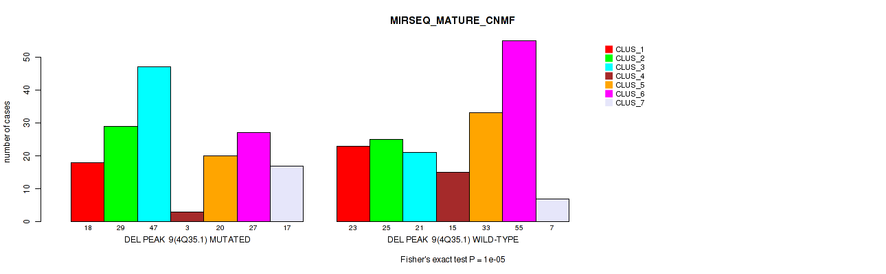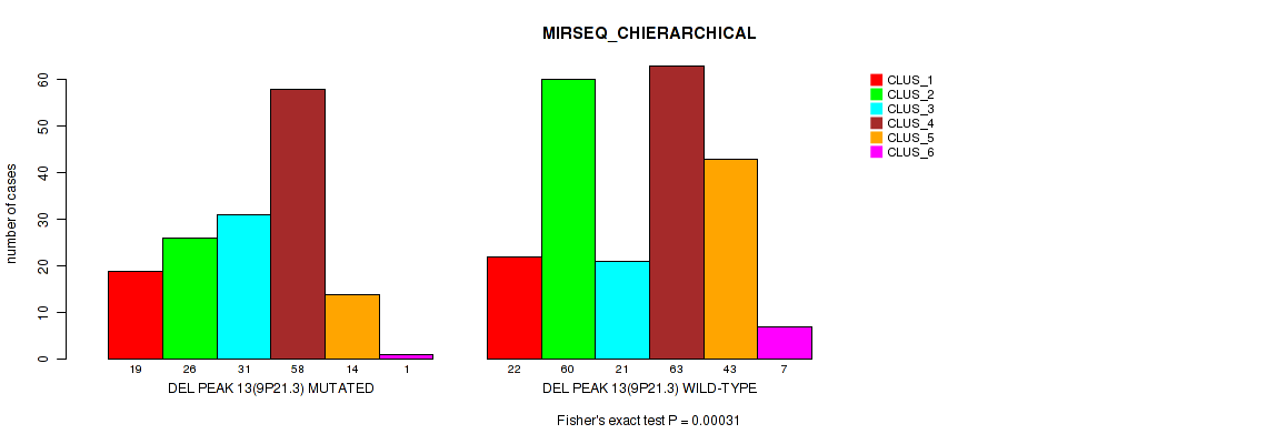 del_9q31.3 cnv correlated to 'CN_CNMF', 'METHLYATION_CNMF', 'MRNASEQ_CNMF', 'MRNASEQ_CHIERARCHICAL', 'MIRSEQ_CNMF', 'MIRSEQ_CHIERARCHICAL', 'MIRSEQ_MATURE_CNMF', and 'MIRSEQ_MATURE_CHIERARCHICAL'.