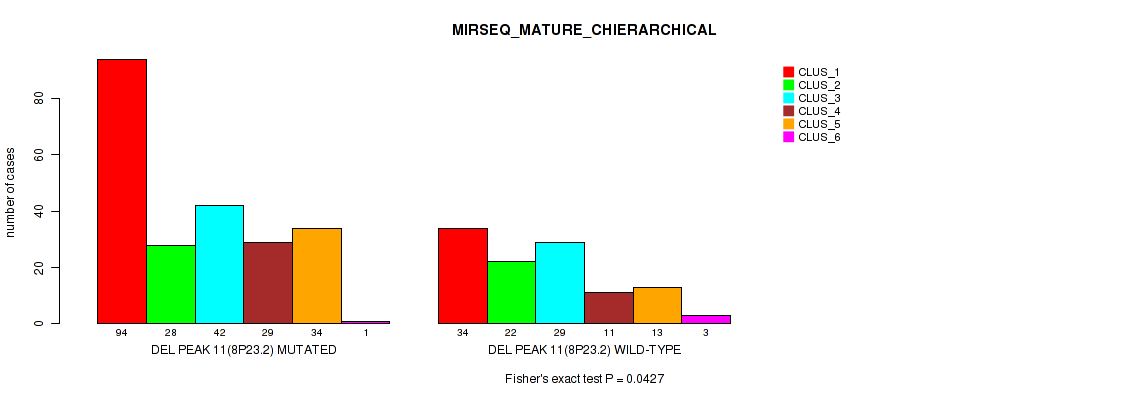 del_8p23.2 cnv correlated to 'CN_CNMF', 'METHLYATION_CNMF', 'MRNASEQ_CHIERARCHICAL', and 'MIRSEQ_MATURE_CHIERARCHICAL'.