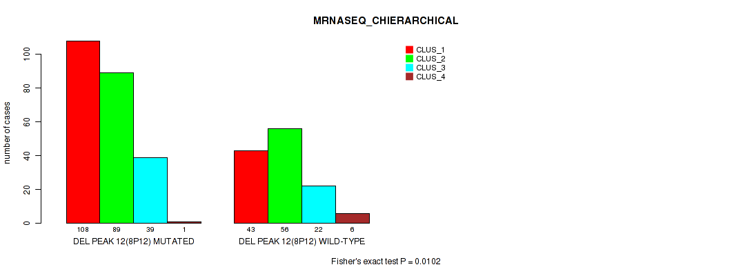 del_8p12 cnv correlated to 'CN_CNMF', 'METHLYATION_CNMF', 'MRNASEQ_CHIERARCHICAL', and 'MIRSEQ_CHIERARCHICAL'.