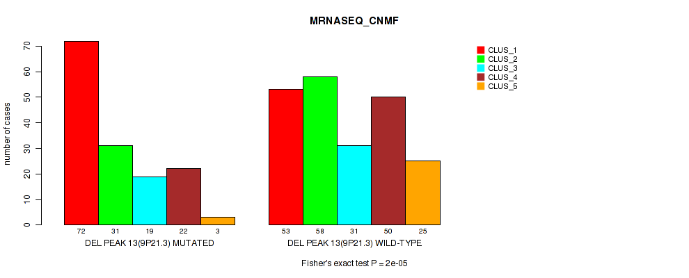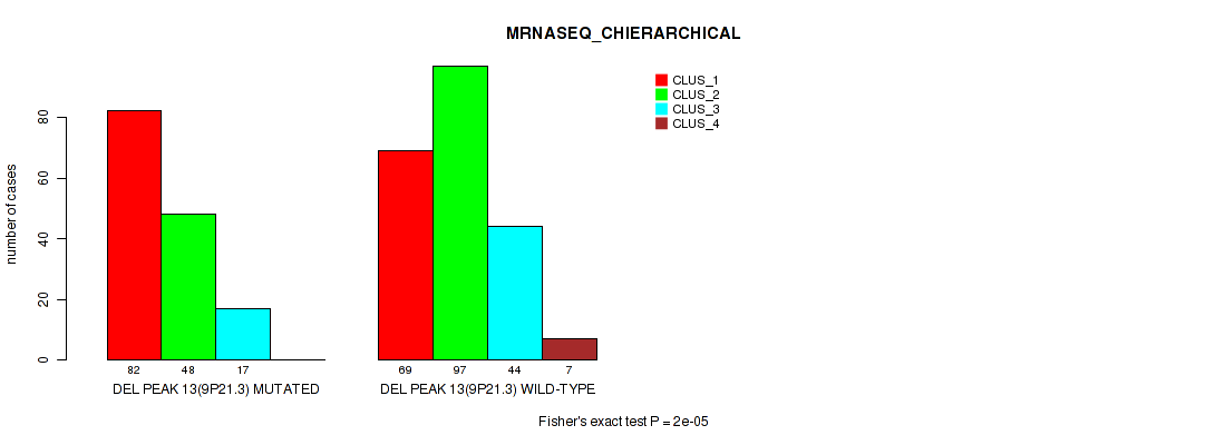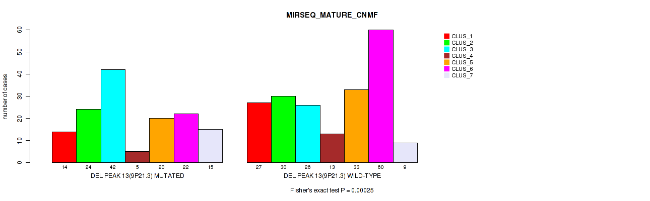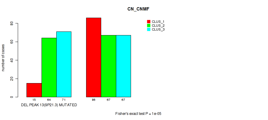 del_9p21.3 cnv correlated to 'CN_CNMF', 'METHLYATION_CNMF', 'MRNASEQ_CNMF', 'MRNASEQ_CHIERARCHICAL', 'MIRSEQ_CNMF', 'MIRSEQ_CHIERARCHICAL', 'MIRSEQ_MATURE_CNMF', and 'MIRSEQ_MATURE_CHIERARCHICAL'.