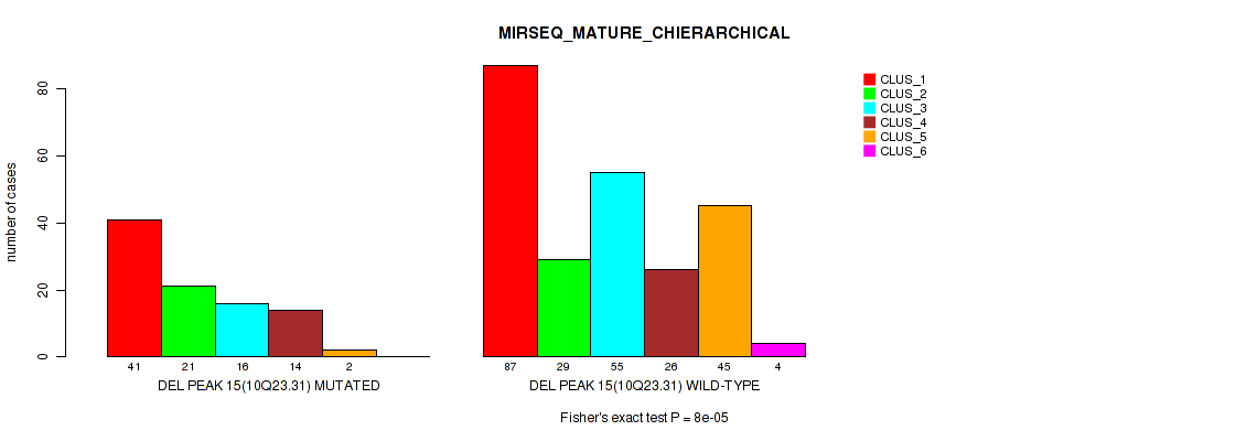del_10q23.31 cnv correlated to 'CN_CNMF', 'METHLYATION_CNMF', 'RPPA_CNMF', 'RPPA_CHIERARCHICAL', 'MRNASEQ_CNMF', 'MRNASEQ_CHIERARCHICAL', 'MIRSEQ_CNMF', 'MIRSEQ_CHIERARCHICAL', 'MIRSEQ_MATURE_CNMF', and 'MIRSEQ_MATURE_CHIERARCHICAL'.