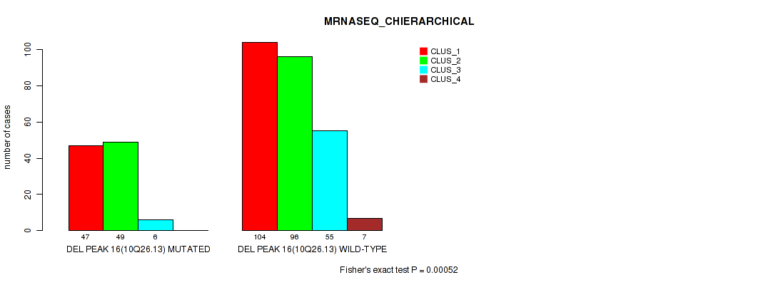 del_10q26.13 cnv correlated to 'CN_CNMF', 'METHLYATION_CNMF', 'RPPA_CNMF', 'RPPA_CHIERARCHICAL', 'MRNASEQ_CNMF', 'MRNASEQ_CHIERARCHICAL', 'MIRSEQ_CNMF', 'MIRSEQ_CHIERARCHICAL', 'MIRSEQ_MATURE_CNMF', and 'MIRSEQ_MATURE_CHIERARCHICAL'.