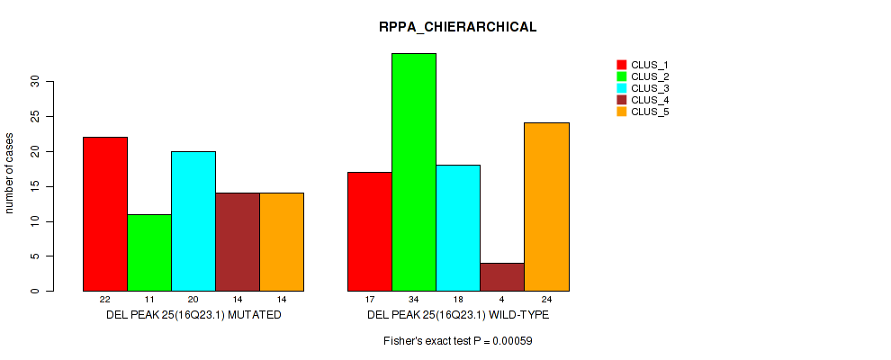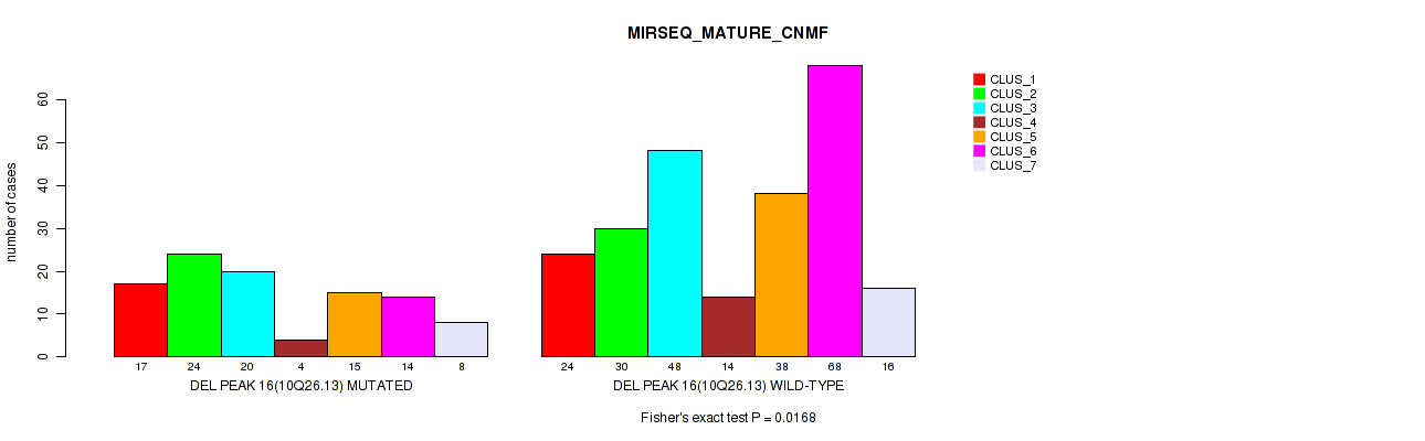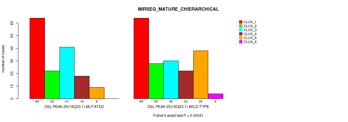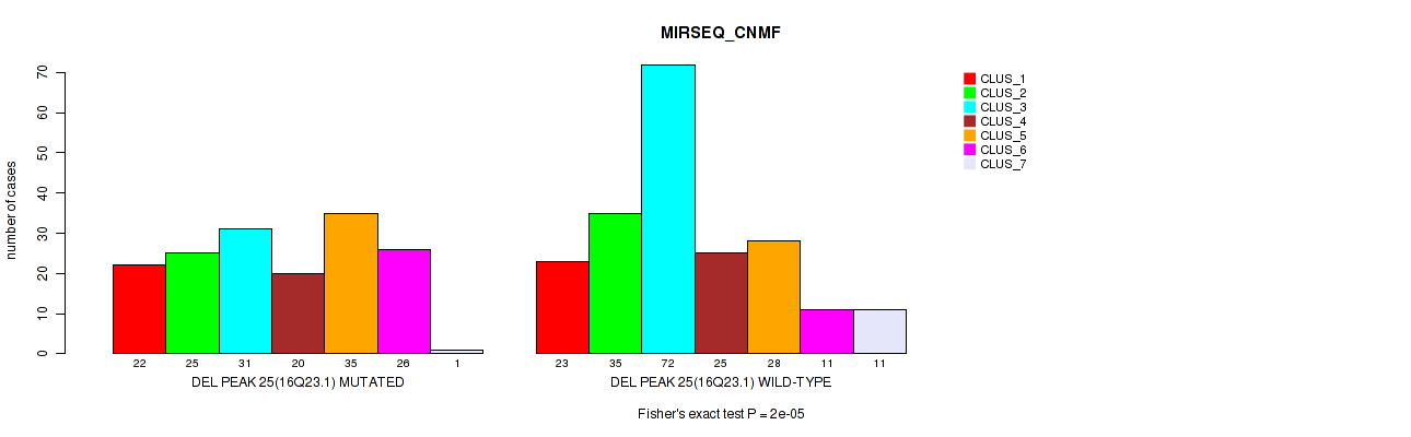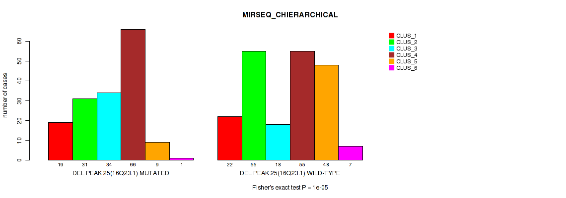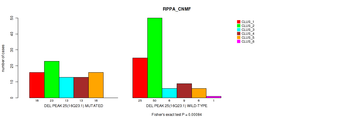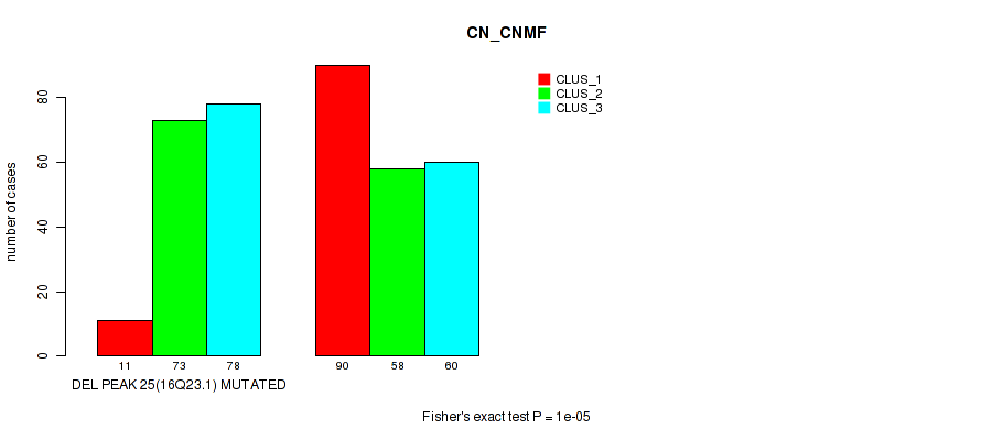 del_16q23.1 cnv correlated to 'CN_CNMF', 'METHLYATION_CNMF', 'RPPA_CNMF', 'RPPA_CHIERARCHICAL', 'MRNASEQ_CNMF', 'MRNASEQ_CHIERARCHICAL', 'MIRSEQ_CNMF', 'MIRSEQ_CHIERARCHICAL', 'MIRSEQ_MATURE_CNMF', and 'MIRSEQ_MATURE_CHIERARCHICAL'.