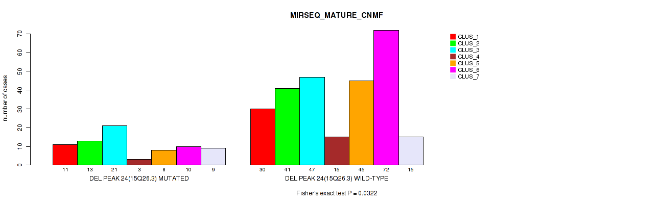 del_15q26.3 cnv correlated to 'CN_CNMF', 'METHLYATION_CNMF', 'RPPA_CNMF', 'RPPA_CHIERARCHICAL', 'MRNASEQ_CNMF', 'MRNASEQ_CHIERARCHICAL', 'MIRSEQ_CNMF', and 'MIRSEQ_MATURE_CNMF'.