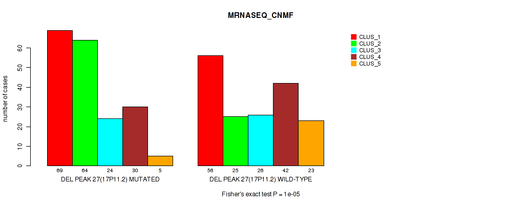 del_17p11.2 cnv correlated to 'CN_CNMF', 'METHLYATION_CNMF', 'RPPA_CHIERARCHICAL', 'MRNASEQ_CNMF', 'MIRSEQ_CNMF', 'MIRSEQ_CHIERARCHICAL', 'MIRSEQ_MATURE_CNMF', and 'MIRSEQ_MATURE_CHIERARCHICAL'.