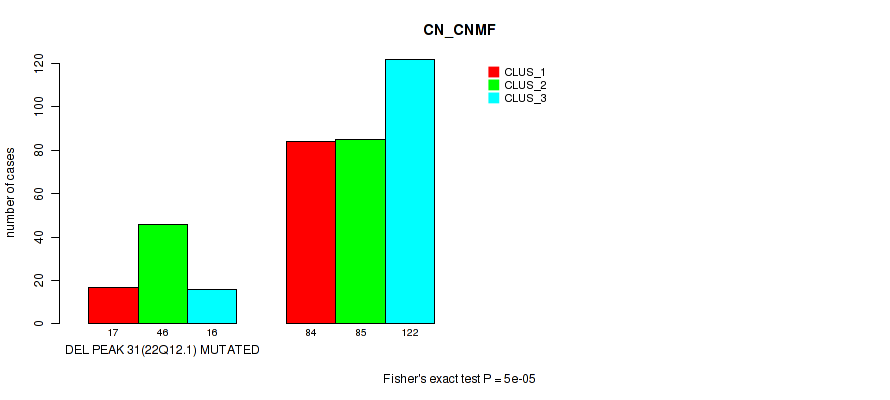 del_22q12.1 cnv correlated to 'CN_CNMF' and 'RPPA_CNMF'.