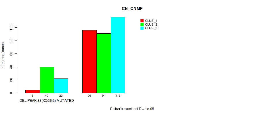 del_xq26.2 cnv correlated to 'CN_CNMF', 'METHLYATION_CNMF', 'MRNASEQ_CNMF', and 'MIRSEQ_CNMF'.