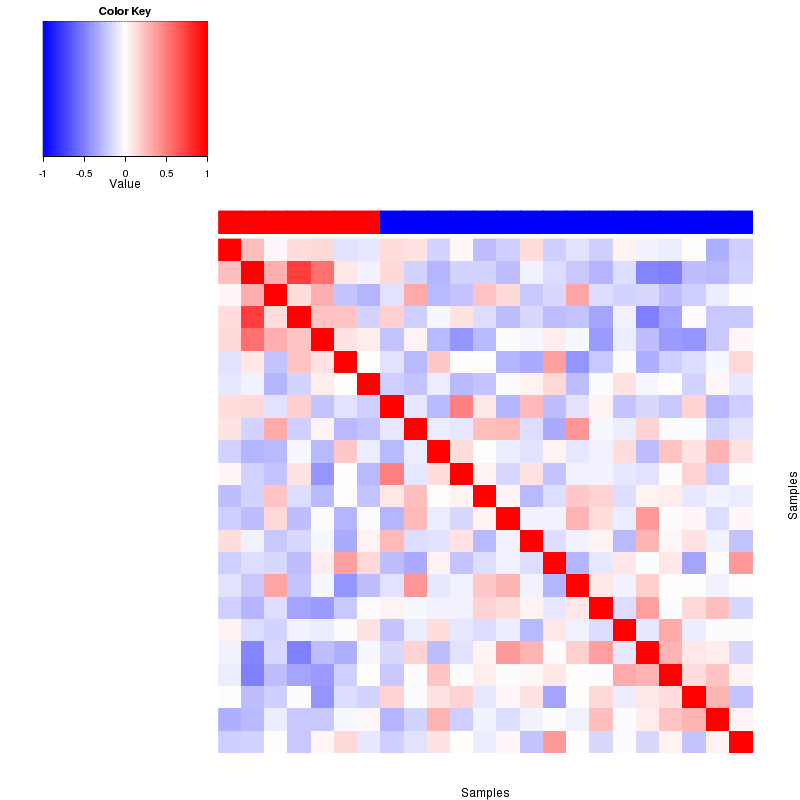 Figure 1. Get High-res Image Samples were separated into 2 clusters. Shown are 23 samples and 74 marker proteins. The color bar of the row indicates the marker proteins for the corresponding cluster.