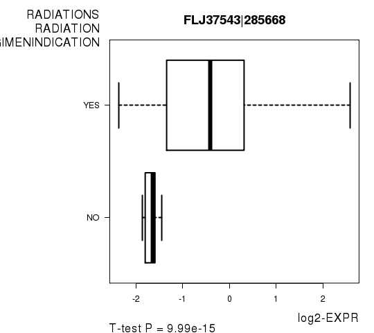 35 genes correlated to 'RADIATIONS.RADIATION.REGIMENINDICATION'.